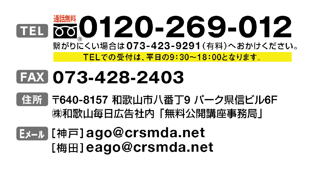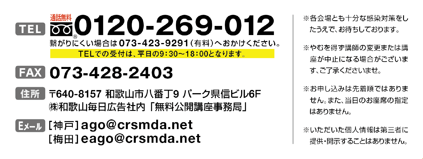 ◎公開講座事務局は、クロスメディア㈱並びに㈱和歌山毎日広告社が請け負っています。